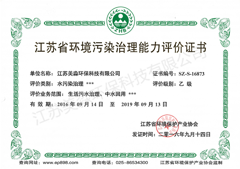 江苏省环境污染治理工程设计能力评价证书-丙级
