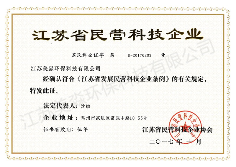 江苏省民营科技企业证书